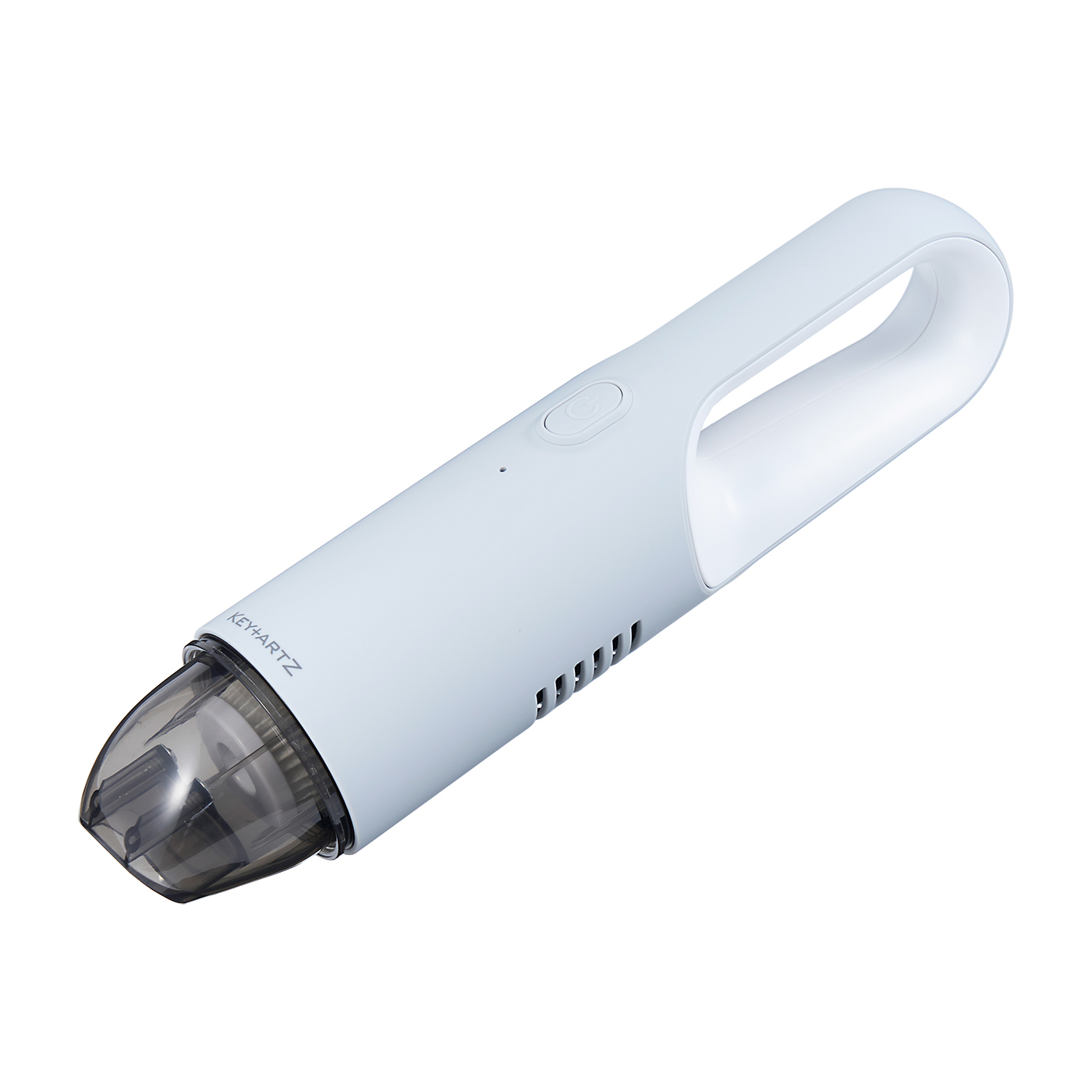 ヒーローグリーンの「ハンディクリーナー HV-22GY」は、アタッチメントが豊富で静かなものがほしい人におすすめ。延長パイプ・隙間ノズル・ブラシノズルが付属しており、家に掃除機がなくスティッククリーナー代わりに使いたい人から高い位置の掃除を終えたい人まで、幅広く使いやすいでしょう。稼動音は平均58.7dBとトップクラスに静かで、本体重量は580gと軽量。クッションカバーやカーペットに張りつきやすく髪の毛を取りこぼしたものの、ほとんどの場合は3往復以内で掃除を終えられます。シーンや時間帯を選ばず、気が向いたときにサッと掃除できる理由がそろっているといえるでしょう。フィルター・ダストカップ・各ノズル・延長パイプは水洗い可能でお手入れは十分しやすいものの、お手入れ用のブラシはなし。集じん容積も0.1Lと頻繁なゴミ捨てが必要そうです。ゴミ捨てにも2工程必要で、手軽さにはやや欠けるでしょう。連続稼動時間は通常モードで約20分、強モードで約15分と特別長くはありません。とはいえ延長ノズルはほかのハンディクリーナーにはなかなか付属しておらず、家中を掃除しやすい工夫は多い1台でした。
