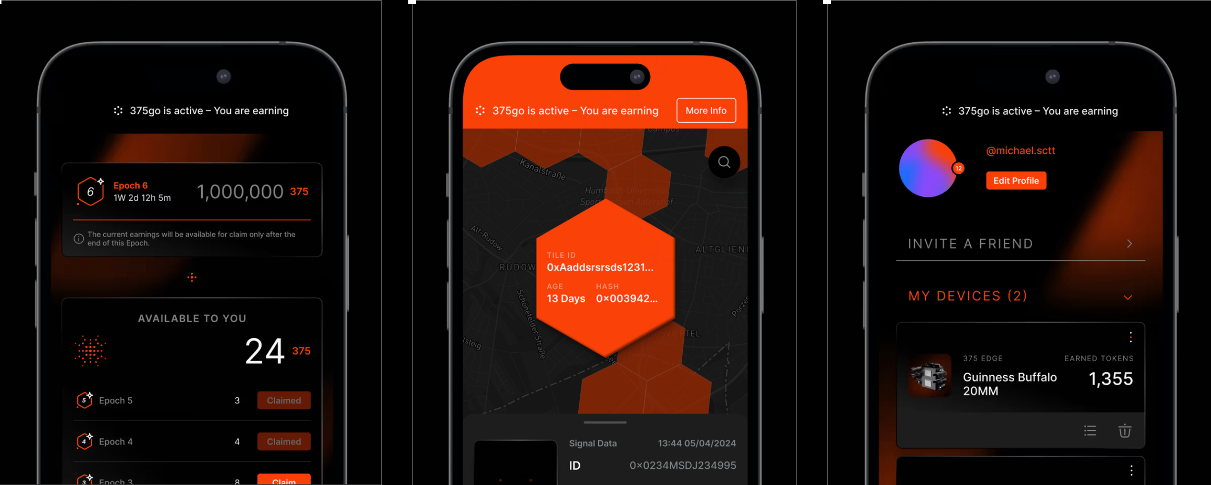 Data contribution rewards: Distributed to both 375EDGE node operators and everyday users of the 375GO app who share data.