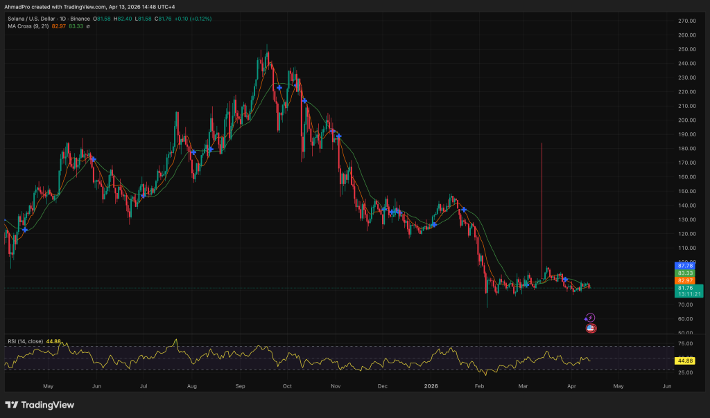 SOL is trading near $81.00, largely unmoved by the milestone, as persistent sell pressure from venture token unlocks continues to cap near-term price action.