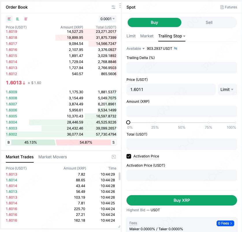 現貨交易手續費收取的規則是在什麽幣種的市場交易,就扣除什麽幣種作為手續費,扣除的費用是以成交量乘以相應的手續費率來計算得到的。MEXC 平臺的現貨交易費率,掛單方(Maker)費率為 0%,吃單方(Taker)費率為 0.05%。掛單即用戶發布的委託單在市場中沒有對應的委託單進行匹配,需要等待成交後,再成交的訂單。吃單即用戶發布的委託單與市場中的委託掛單存在匹配可以立即成交的訂單。未成交的委託單以