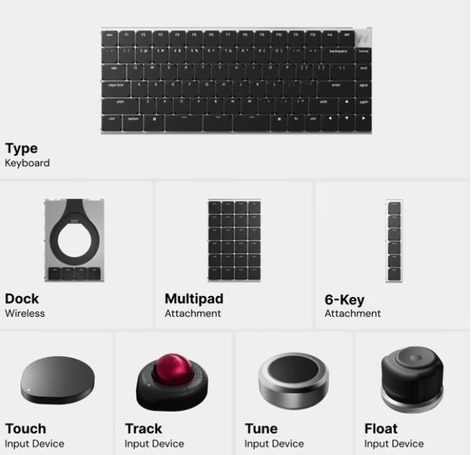 特別提一下 Dock,這是一個可更換旋鈕等配件的基座,配有4個按鍵及中央的環形空間。使用者可以在此安裝4鍵軌跡球、支援手勢操作的觸控板、具有回饋功能的旋鈕,或是可進行六軸自由度控制的Float 裝置。每個模組都可自訂巨集操作。有獨立的電池,能為整個設備供電,讓鍵盤成為無線的設備。售價259美元起,這裡有賣。