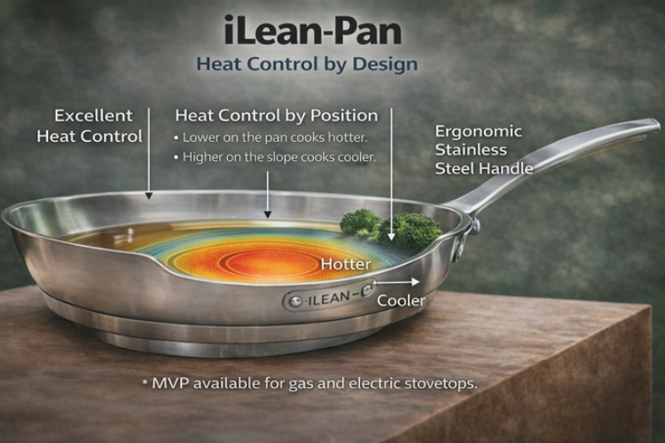 這個想法來自專業廚房常見的操作方式。許多廚師本來就會把煎好的食材推到鍋邊降溫,把這個動作做進鍋子裡讓溫差自然發生,於是就誕生了這個鍋。